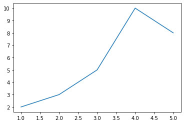 -plt.plot([1, 2, 3, 4], [2, 4, 6, 8])과 같이 두 개의 리스트를 입력하면 순서대로 x, y값으로 인식함.