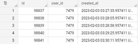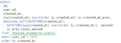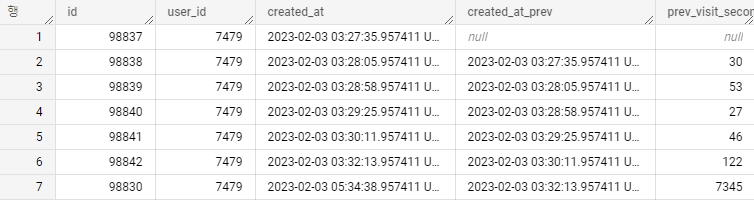 예시 2) 이벤트 테이블에서 얼마만의 재방문인지 확인하기