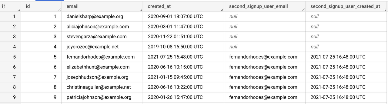 NTH_VALUE(email, 5) OVER ( ORDER BY id ) as second_signup_user_email,