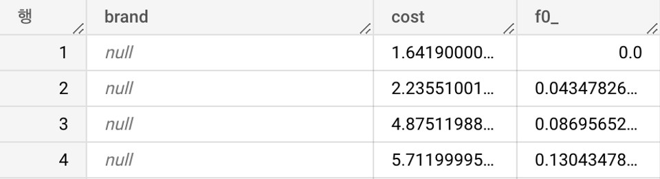 PERCENT_RANK() OVER (PARTITION BY brand ORDER BY cost )