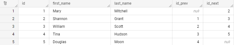 예시 1) 이전행, 다음행의 ID값 출력하기
